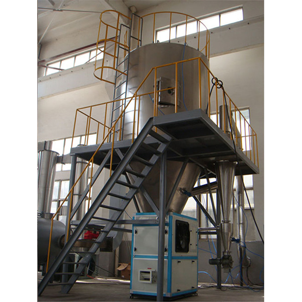 LPG系列離心式噴霧干燥機系氣液兩相并流式干燥設備,采用高速離心式霧化器,將料液霧化成微細的霧滴,與經分布器分布后的熱空氣在干燥塔內混合,迅速進行熱質交換,在極短的時間內干燥成為粉狀產品。生產控制和產品質量控制方便可靠,廣泛應用于不同種類液體物料的干燥生產。